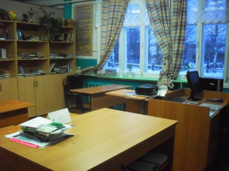 Кабинет предназначен для проведения уроков, классных мероприятий, индивидуальных занятий с обучающимися. За кабинетом закреплены: • мебель для проведения занятий: стол ученический (8 шт.), стул ученический (14 шт.), размеры учебных столов и стульев соответствуют росту и возрасту обучающихся класса; стол учительский с подвесной тумбой, стул винтовой;